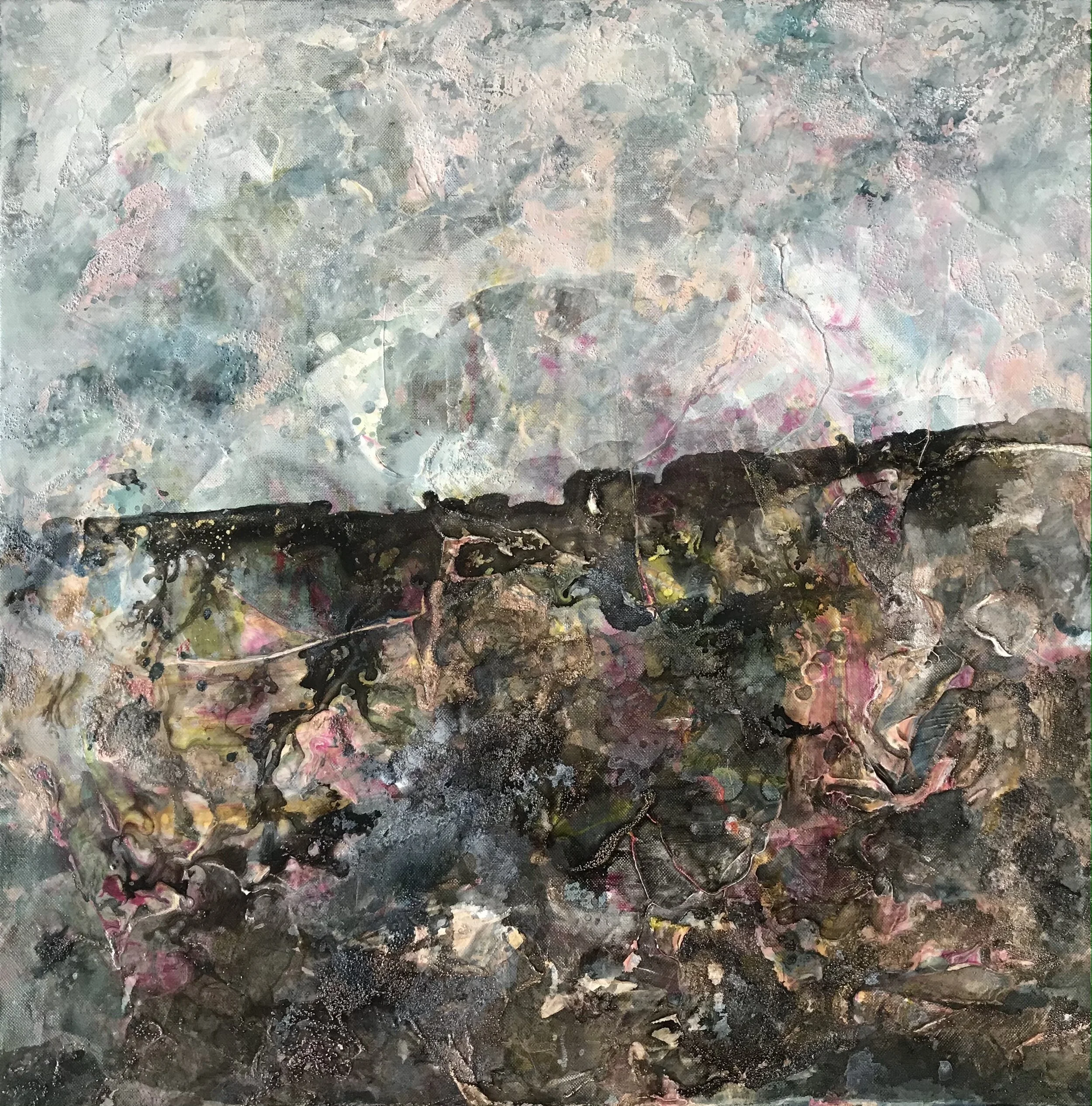 Recently I have been investigating how the application of paint can represent, or physically work through, some aspects of this conundrum. In some works the repetitive application and removal of layers of textured paint creates an unstable surface of residual stains, marks and scrapes, which inescapably hold the memory of what the canvas has held over time. Other works incorporate an element of chaos into the painting process – whether that is an excess of water or quick-drying plaster. The alchemy of paint and water on a surface can be unpredictable, just as a thought or memory can surface unexpectedly – but there is no escaping the knowledge that it came from somewhere within you.